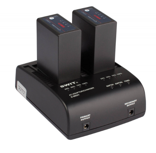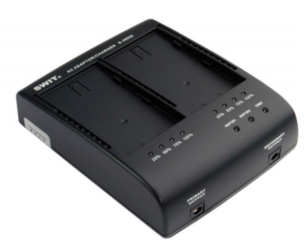 SWIT S-3602D je dvojni polnilnik za baterije SWIT S-8D98, S-8D58 in S-8D62, združljiv