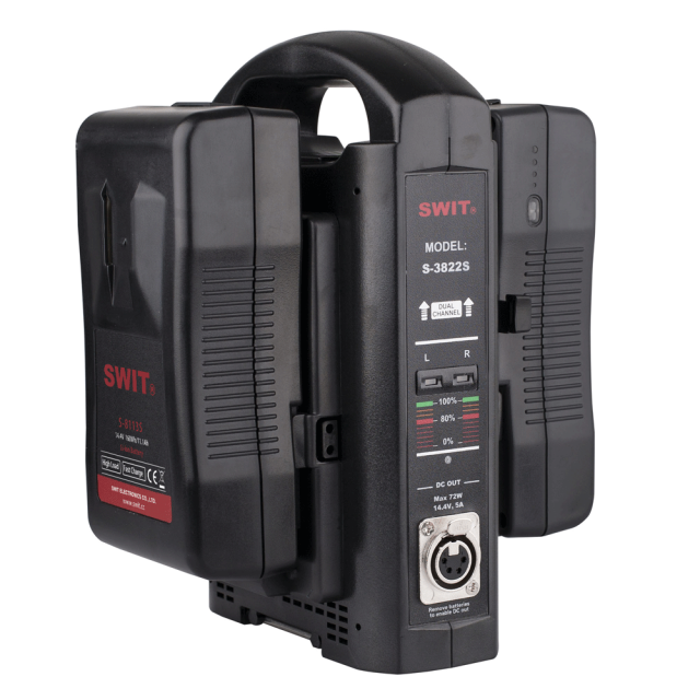 SWIT S-3822S je dvokanalni sočasni polnilnik za baterije V-Mount