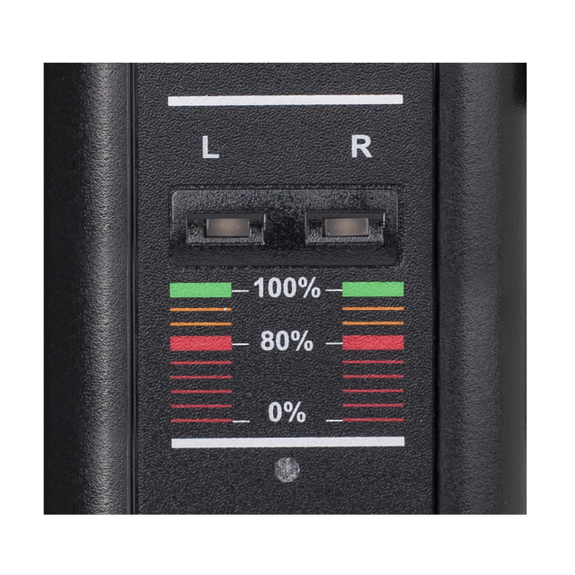 S-3822S ima na sprednji plošči indikatorje polnjenja LED, ki z različnimi barvami prikazujejo zmogljivost vsakega kanala v realnem času: