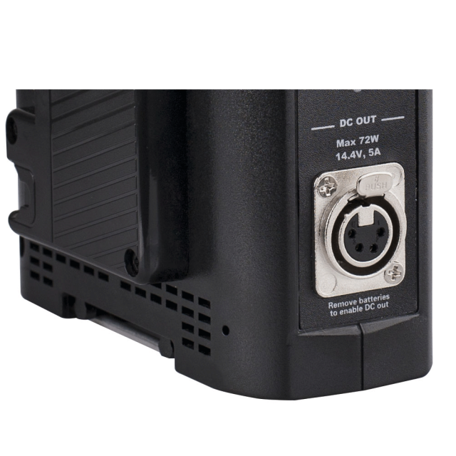 Prenosni polnilnik S-3822S lahko hkrati polni 2 bateriji V-mount. Izhod za polnjenje je enosmerni tok 16,8 V, 3A × 2