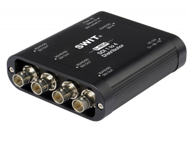 SWIT S-4604 3G-SDI 1 do 4 razdelilnik in ojačevalnik je prenosna in zanesljiva rešitev za distribucijo SDI za profesionalne oddajne in produkcijske namestitve. Sprejme en 3G/HD/SD-SDI vhod in ga distribuira na štiri simultane SDI izhode, kar zagotavlja stabilen in visokokakovosten prenos signala.