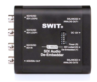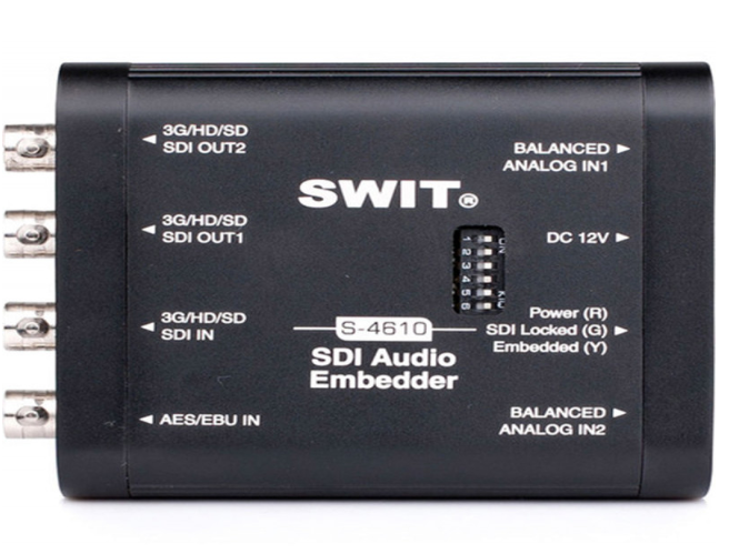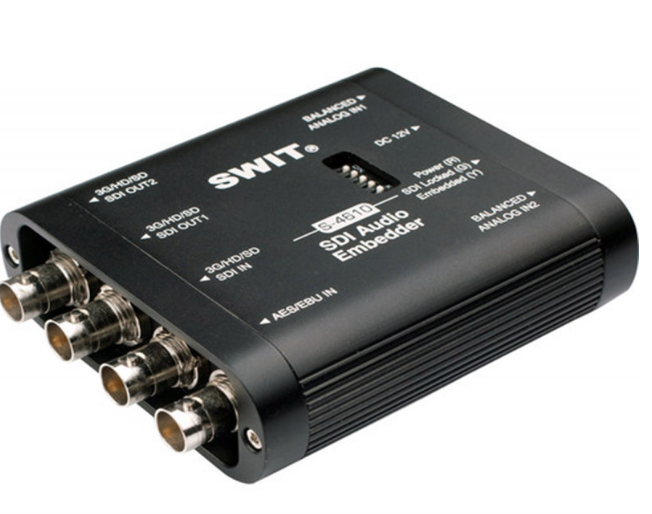 SWIT S-4610 je kompakten in robusten SDI avdio vgrajevalnik, ki v SDI signale integrira digitalni in analogni avdio signal ter zagotavlja zanesljive 3G/HD/SD-SDI izhode za profesionalno produkcijo na terenu in oddajalske aplikacije.
