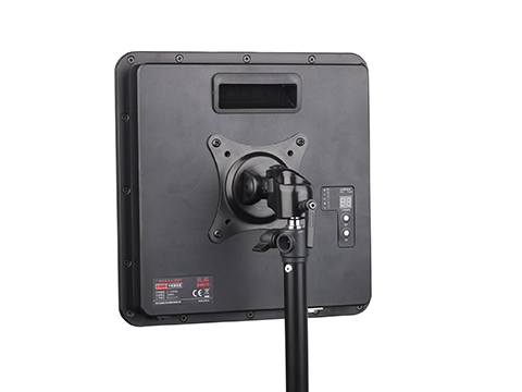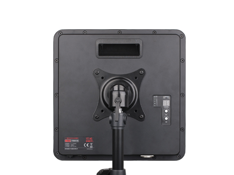 Panelni sprejemnik S-4990 ima nosilec VESA za namestitev na stativ za razsvetljavo in se napaja prek 4-končnega vhoda LEMO DC-IN, 7-36 V. V paketu je na voljo tudi baterijska plošča z objemko za montažo V ali Gold mount, ki omogoča namestitev baterije na stativ za razsvetljavo.