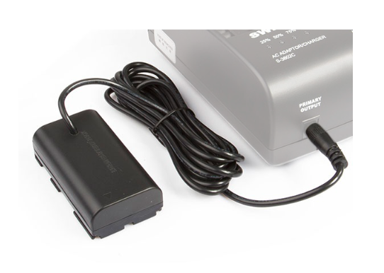 SWIT S-7500E je adapter za lažno baterijo tipa Canon LP-E6 s kablom 5,5/2,1 mm DC,