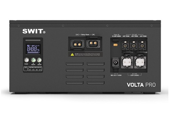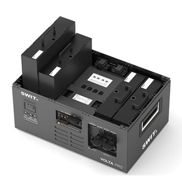 Modularna elektrarna SWIT VOLTA PRO 4,5 kWh 2BP je kompaktna, visoko zmogljiva mobilna rešitev za napajanje profesionalnih video in filmskih produkcij. Opremljena je z modularnimi ternarni Li-ionskimi akumulatorskimi baterijami in zagotavlja do 3200 W neprekinjene moči z izhodi AC in DC v standardni Eurobox izvedbi, ki je primerna za prenašanje.