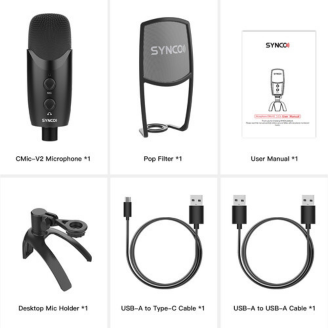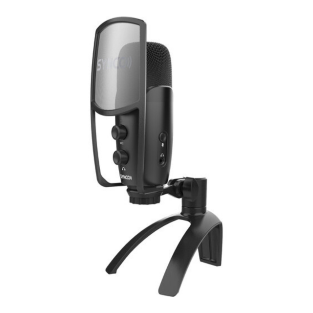 Synco CMic-V2 je kondenzatorski mikrofon z enako kardioidno kapsulo kot V10 in zelo učinkovitim pop filtrom za nemoteno snemanje človeškega glasu, npr. za videokonference, podcasting itd. Digitalni izhod (192 kHz/24 bitov) in napajanje zagotavljata USB.