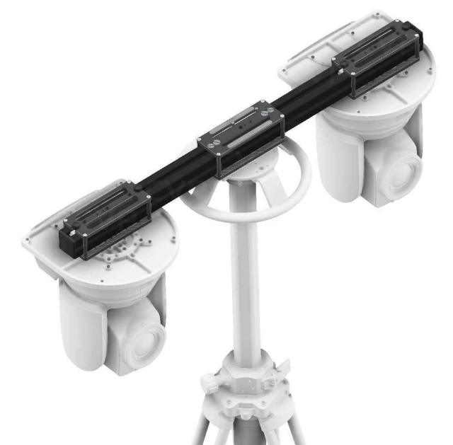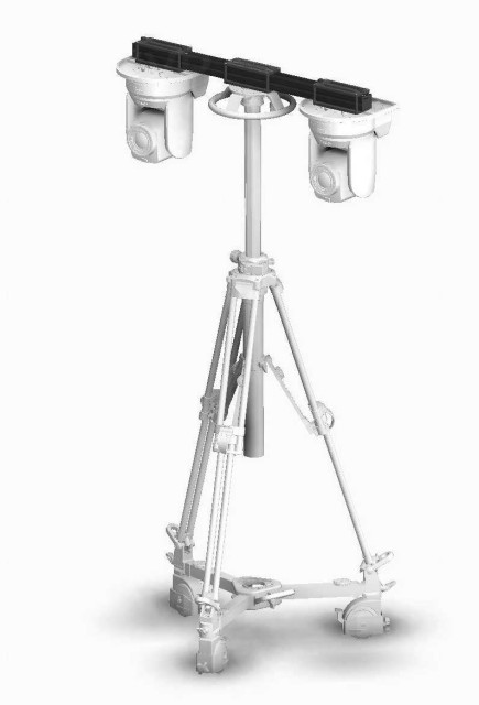 Upoštevajte, da kamera ni vključena v ta izdelek. Ta nosilna palica je zasnovana za namestitev do treh PTZ kamer z usklajenim vzorcem namestitve. Je združljiva z vsemi podstavki, stojali Mitchell in vsemi nosilci Cartoni PTZ.