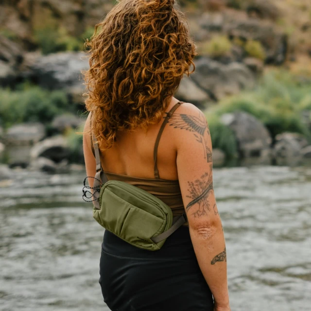 Oblikovana kot torba za hiter dostop okoli pasu ali minimalistična torba za prek ramena, ki jo lahko nosite pod ali nad oblačili. Širša oblika in lahka konstrukcija se prilagajata pasu in udobno ležita v predelu ledvene hrbtenice.