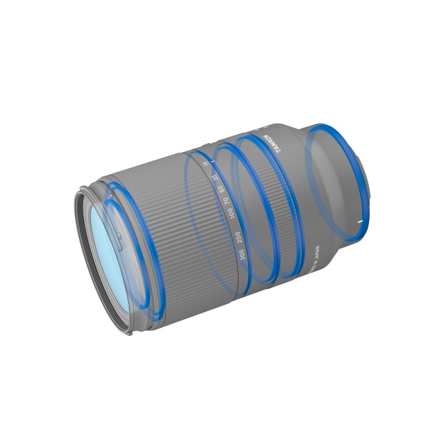 Mehanizem stabilizacije slike VC pomaga ohranjati ostro sliko pri fotografiranju brez stativa ali v slabih svetlobnih pogojih. ZOOM LOCK omogoča zaklepanje zooma. Kot pri drugih Tamronovih objektivih za sistemske brezzrcalne fotoaparate je premer filtra 67 mm.