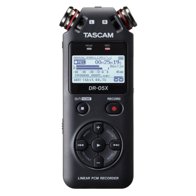 TASCAM DR-05X omogoča visokokakovostno snemanje z enostavnim vmesnikom za uporabo ter je prenosen, zmogljiv in resnično dragocen. Dva notranja kondenzatorska mikrofona zmoreta vse od mehkega do glasnega snemanja z ravnjo SPL 125 dB, občutljivost pa zajame vsako podrobnost.