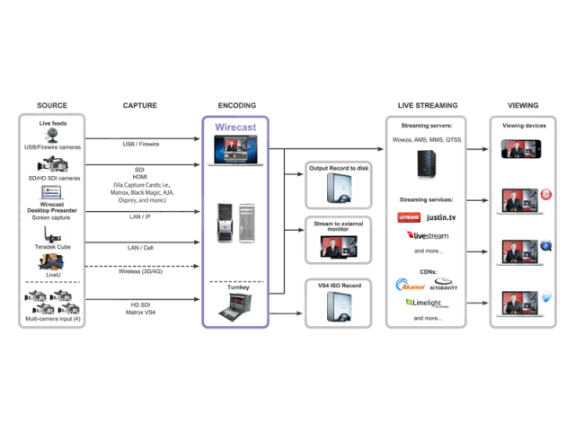 Telestream Wirecast je celovita programska oprema za produkcijo oddajanja v živo, ki omogoča zajemanje produkcije v živo in neposredno oddajanje na več strežnikov in platform hkrati. Z Wirecastom lahko hkrati pretakate več kamer v živo in dinamično mešate druge medije, kot so filmi, slike, zvoki, ter dodajate produkcijske funkcije, kot so prehodi, podnapisi, ključavnice in drugo. Program Wirecast je idealen za oddajanje profesionalnih internetnih oddaj v živo, novic, športnih dogodkov, koncertov, sestankov podjetij, predavanj in še veliko več.