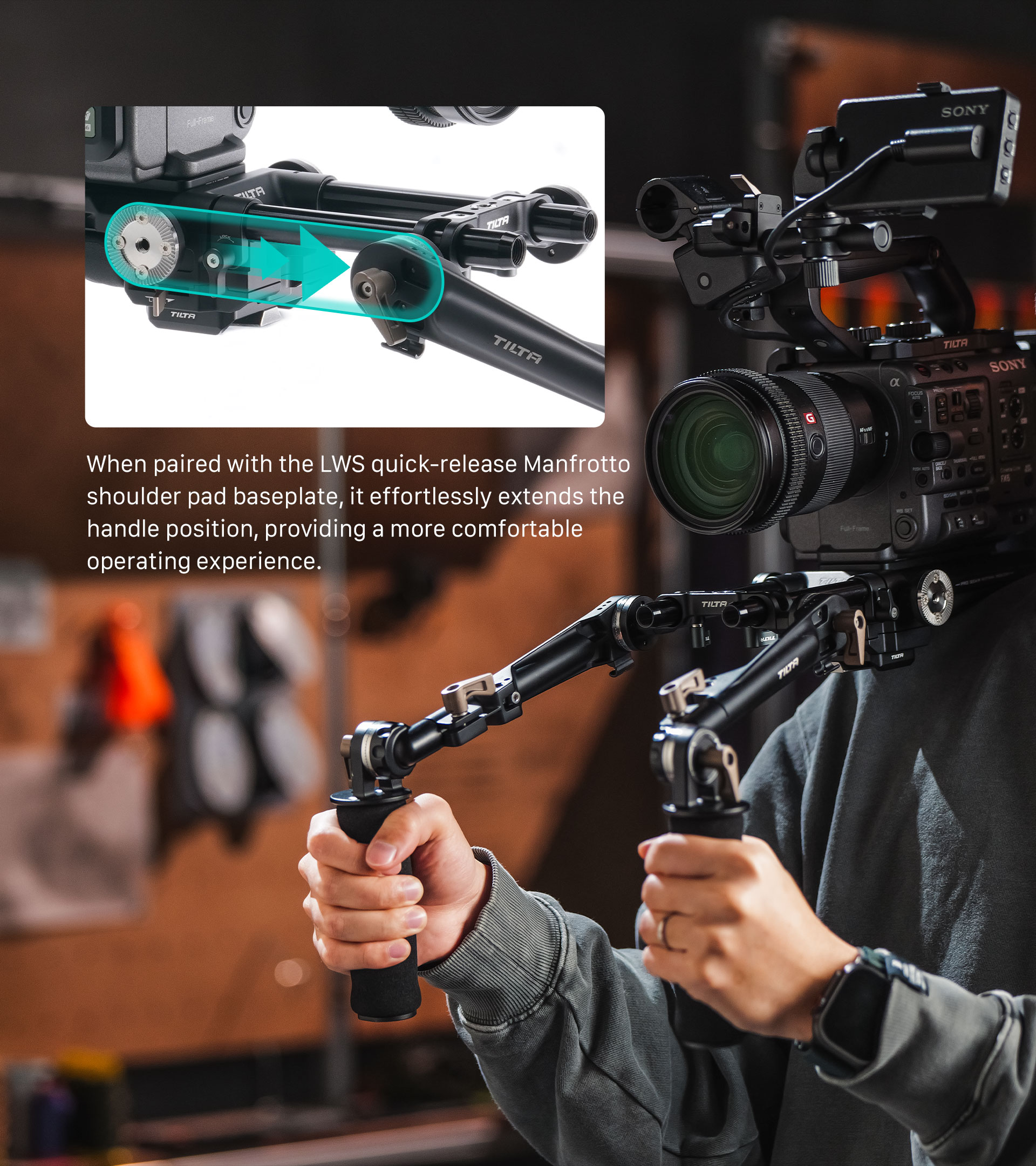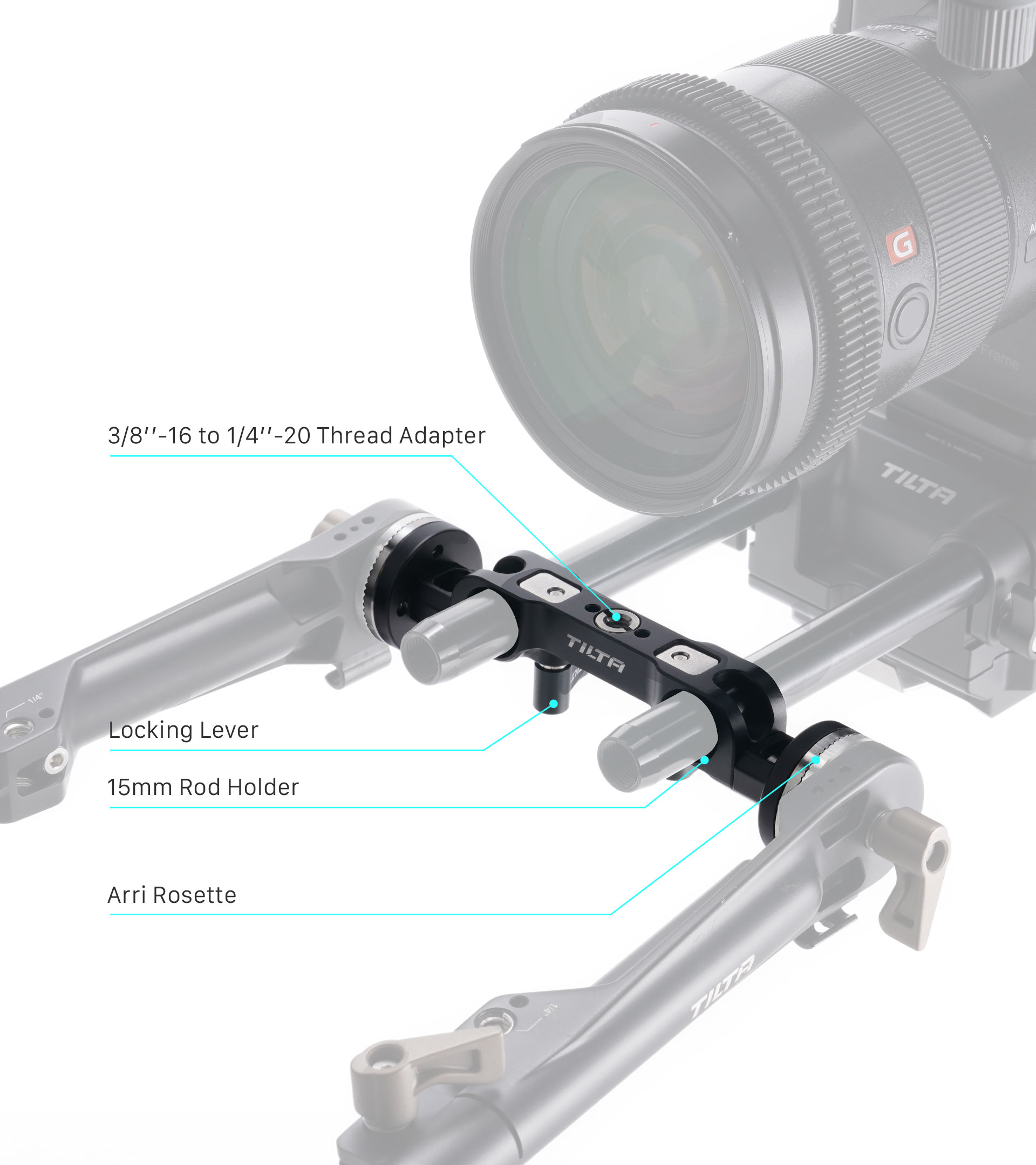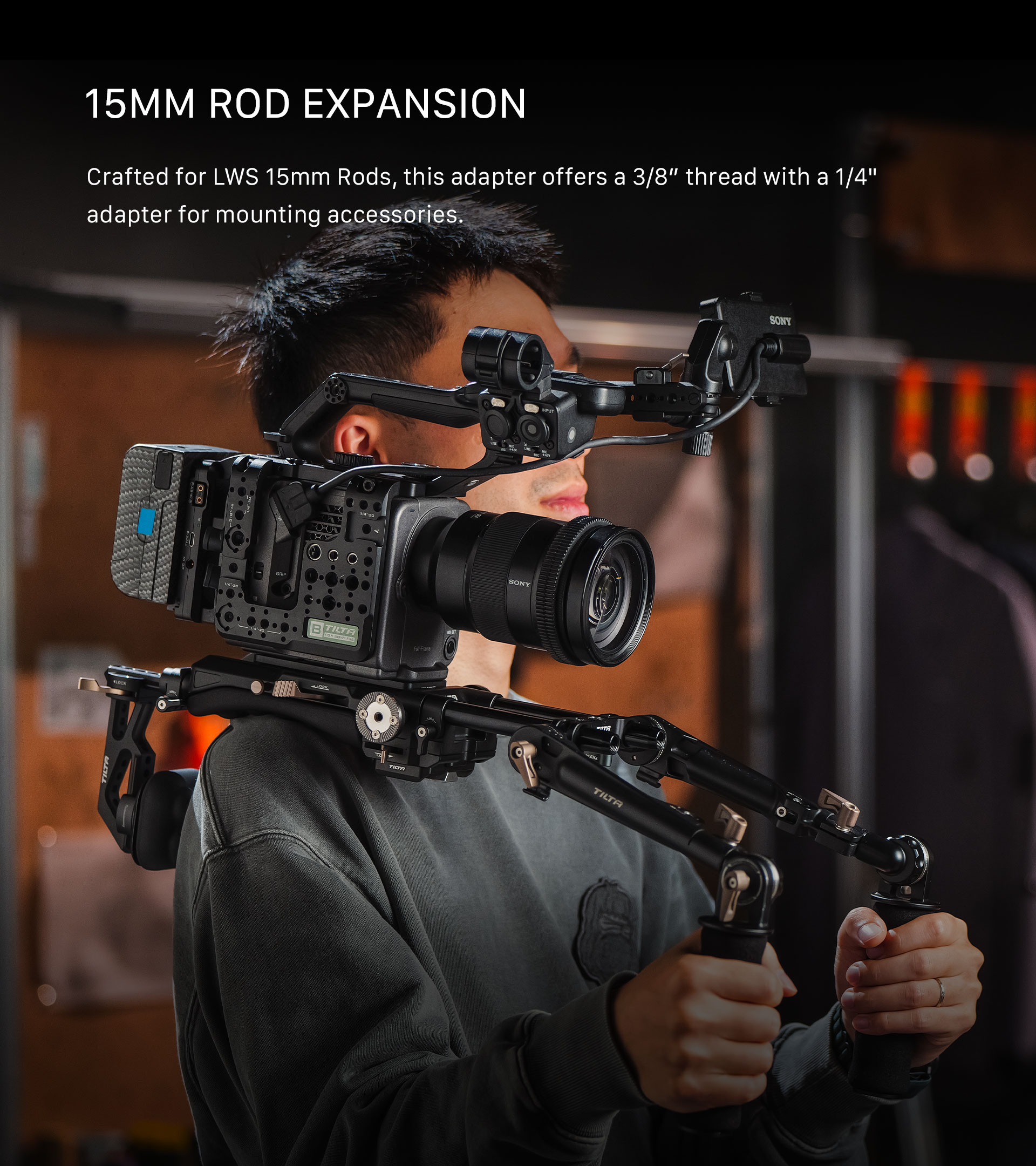 Ta adapter v stilu mostu se pritrdi prek 15-milimetrskih palic LWS in uporabnikom omogoča pritrditev dodatne opreme prek rozetnih priključkov.