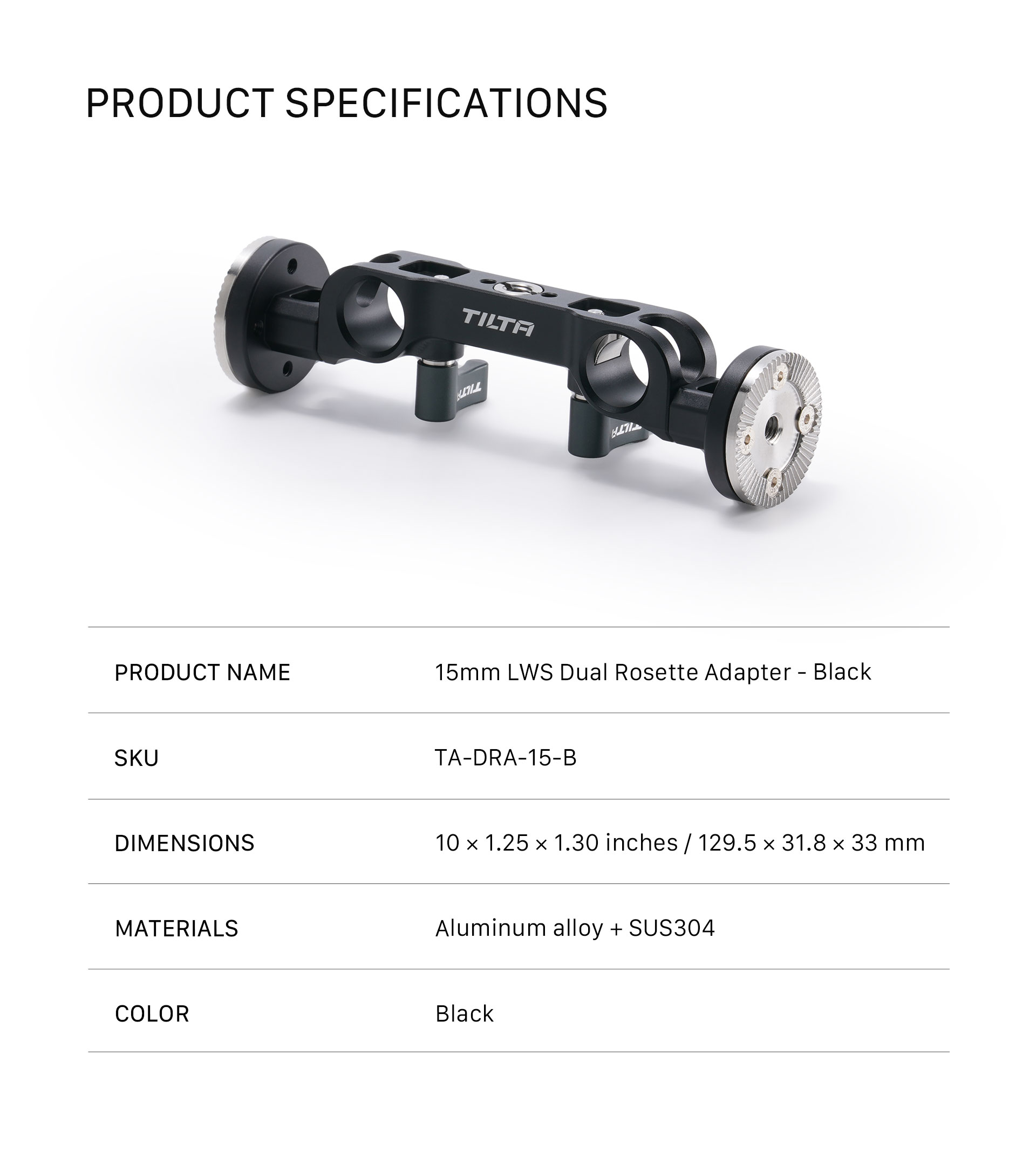Predstavljamo 15-milimetrski adapter za dvojno rozeto LWS. Ta mostni adapter se pritrdi na 15 mm palice LWS in uporabnikom omogoča pritrditev dodatne opreme prek rozetnih priključkov.