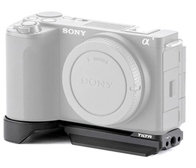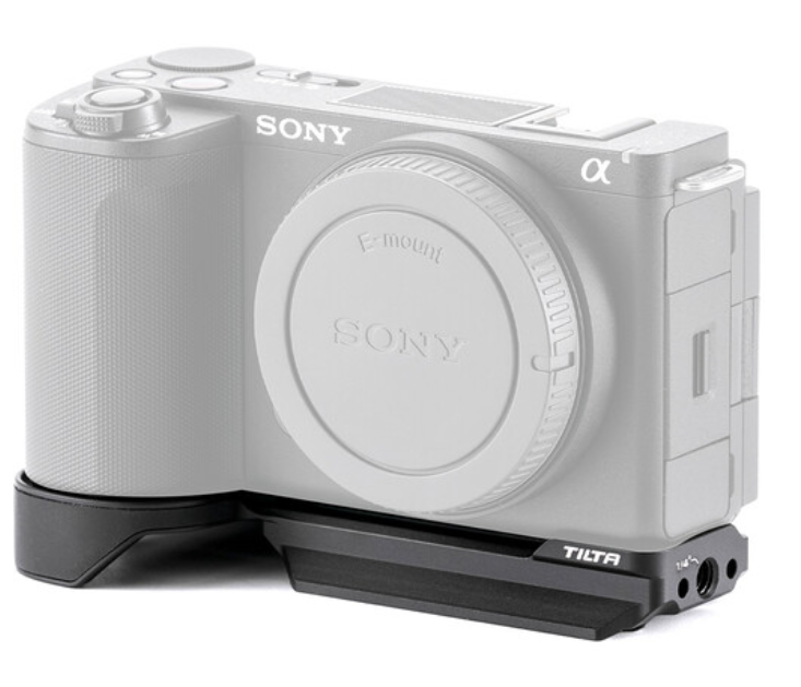 Tilta TA-T69-ABP-B je posebej izdelana za Sony ZV-E10 II in je ultralahka, a trdna spodnja plošča tipa Arca, ki kompaktno vlogersko kamero spremeni v orodje, ki je popolnoma pripravljeno za uporabo s stabilizatorjem in stativom. Pametna oblika, ki se ovije okoli ročaja, se trdno pritrdi na dno ročaja, da prepreči kakršno koli zvijanje ali naključno snemanje, medtem ko se integrirani robovi Arca-Swiss brez adapterjev neposredno vstavijo v združljive glave, sponke ali plošče za hitro sprostitev serije DJI RS. Dodatne možnosti pritrditve vključujejo več 1/4"-20 navojev na dnu, namenski navoj proti zvijanju za navpično usmeritev na strani in vgrajen hladni čevelj za mikrofone ali luči.