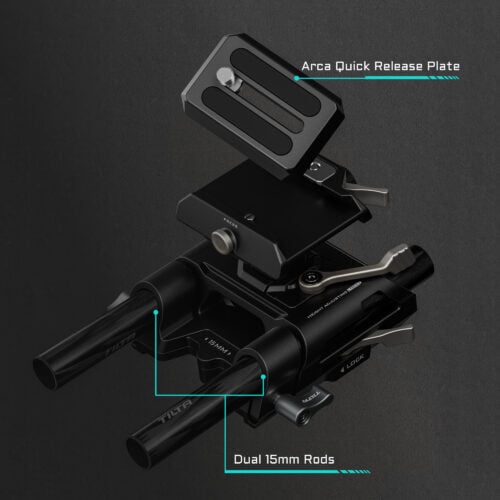Spodnji del osnovne plošče je združljiv s standardnimi golobi Tilta, ima pa tudi navoj 1/4″-20 za pritrditev na stative in druge podporne sisteme.
