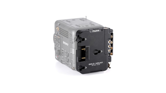 Ta baterijska plošča prilagodi vgrajeno baterijsko ploščo V-Mount fotoaparata Sony Burano na baterijsko ploščo Gold Mount ali V-Mount z dodatnimi izhodi za napajanje.