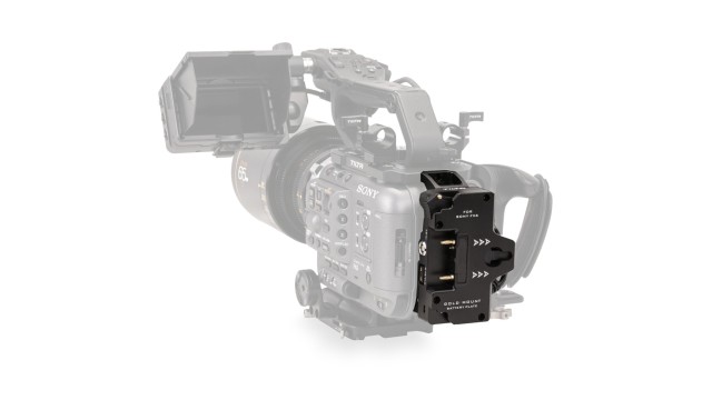 Ta baterijska plošča se hitro pritrdi in zaklene v baterijski prostor fotoaparata Sony FX6, dodatno pa jo lahko pritrdite s povezavo z večnamensko zgornjo ploščo.