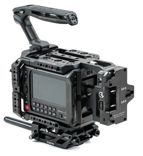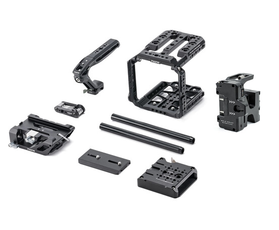 Priložena plošča za baterijo Gold Mount se neposredno vklopi v režo za baterijo BP-U kamere in zagotavlja zanesljivo napajanje iz baterij Gold Mount z visoko zmogljivostjo. Podpira tudi več izhodov za dodatno opremo, vključno z dvojnimi vrati D-Tap, 2-pinskim izhodom v slogu LEMO in USB-C, z možnostjo vroče zamenjave prek vhoda DC. Za snemanje iz roke in pod nizkim kotom komplet vključuje zgornji in stranski ročaji Tilta Xeno z NATO sponkami, ki ponujajo ergonomične silikonske ročaje in dodatne pritrdilne točke. Komplet dopolnjuje 15-mm LWS-osnova z združljivostjo z dovetail in dvema 8-palčnima navojnima 15-mm palicama, ki omogočata enostavno pritrditev matte boxov, sistemov za sledenje fokusu in drugih dodatkov na palicah. Ta profesionalni komplet je idealna rešitev za vse v enem za zahtevna produkcijska okolja.