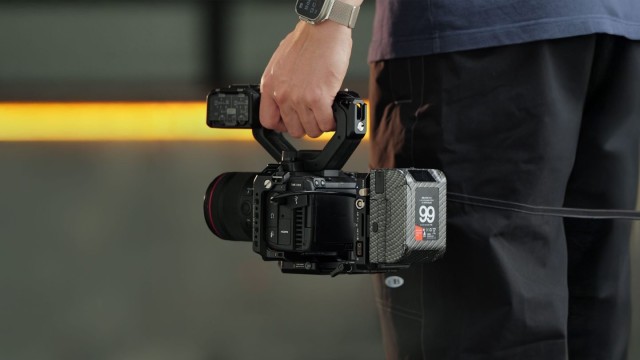 Ročaj ponuja 40 mm nastavljive višine in teksturiran oprijem z nedrsečim silikonom, kar zagotavlja večje udobje pri daljšem držanju kamere v roki.