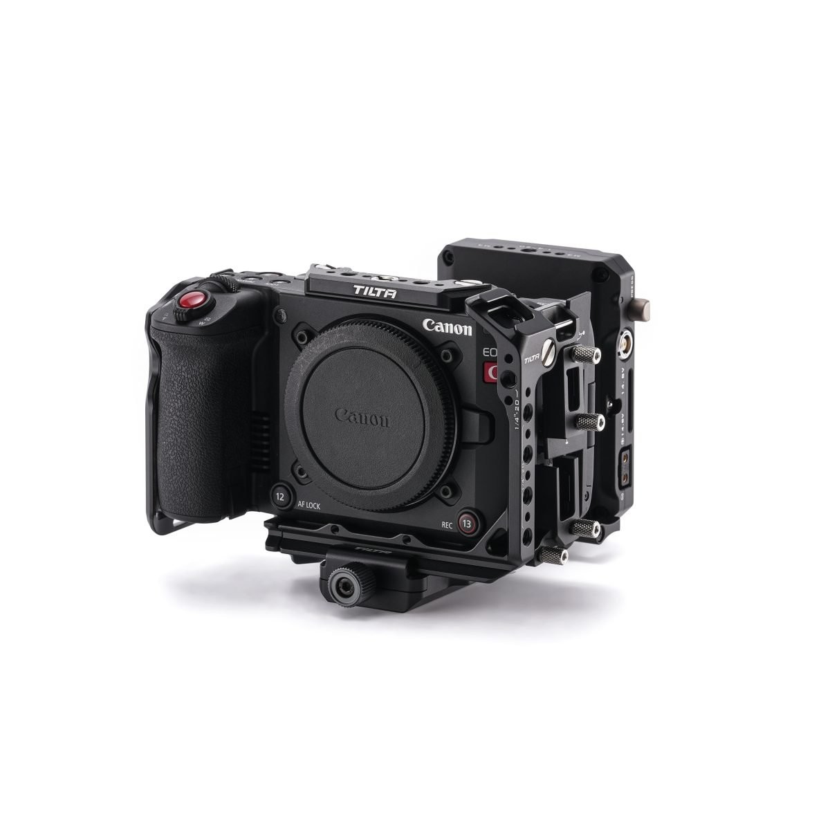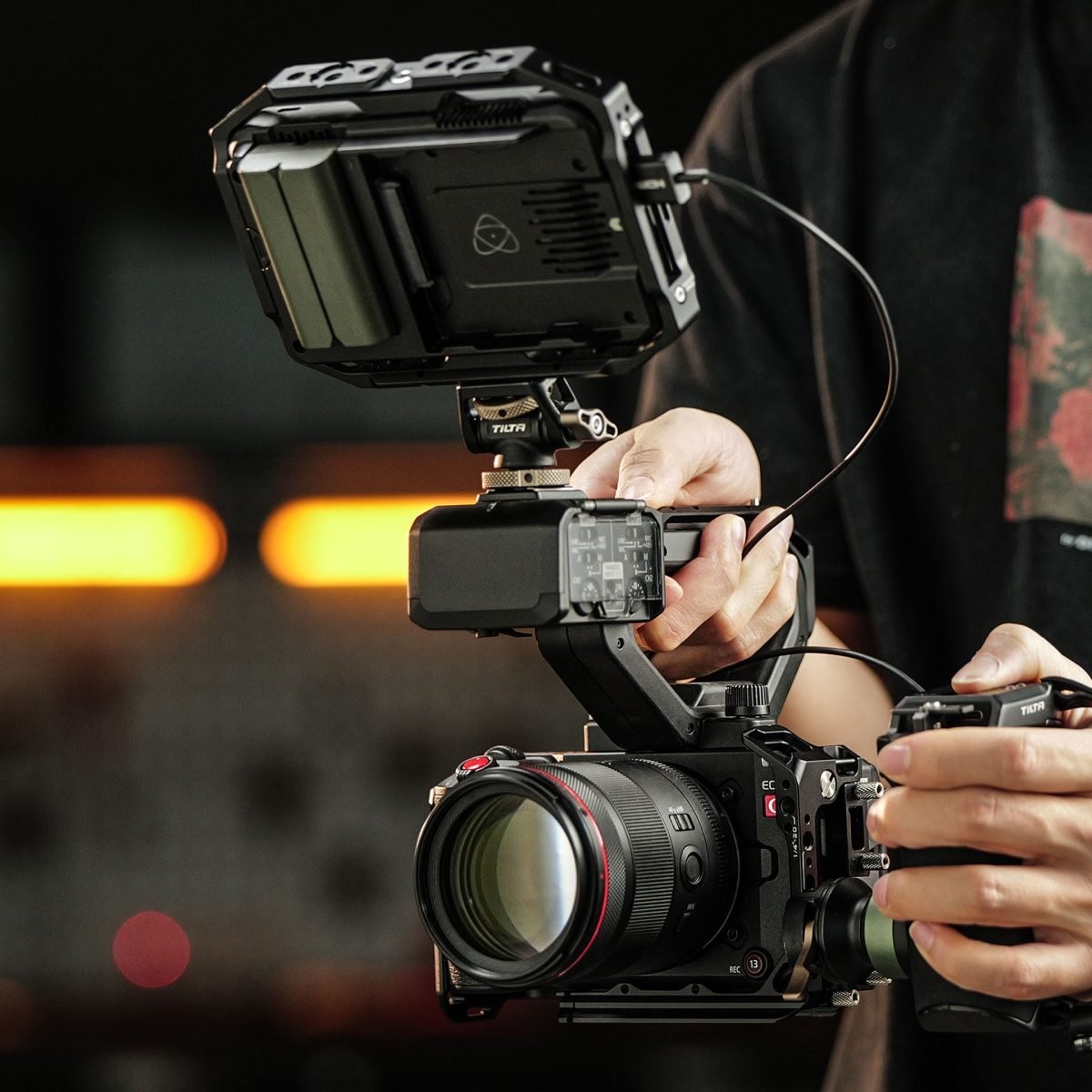 Tilta Camera Cage za Canon C50 Power Kit je natančno izdelana zaščitna in funkcionalna oprema, posebej zasnovana za ohišje kamere Canon C50. Nudi izboljšano zaščito in hkrati zagotavlja robustno platformo za namestitev različnih dodatkov za produkcijo videa. Ta kletka združuje modularno konstrukcijo z razširjenimi možnostmi napajanja, da podpira zahtevne pogoje snemanja in podaljšane čase delovanja.