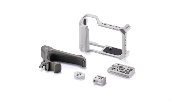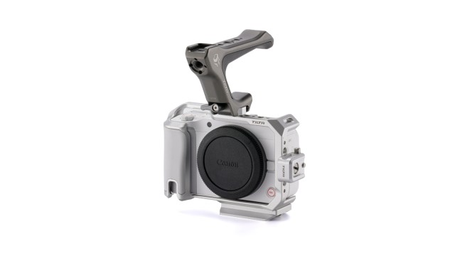 Osnovni komplet kletke za Canon R50 V. Ta kletka služi kot zaščita za ohišje fotoaparata, hkrati pa omogoča pritrditev široke palete zunanjih dodatkov z več možnostmi pritrditve, vključno z drsno letvijo, NATO letvijo in 1/4"-20 navoji z lokacijskimi točkami.