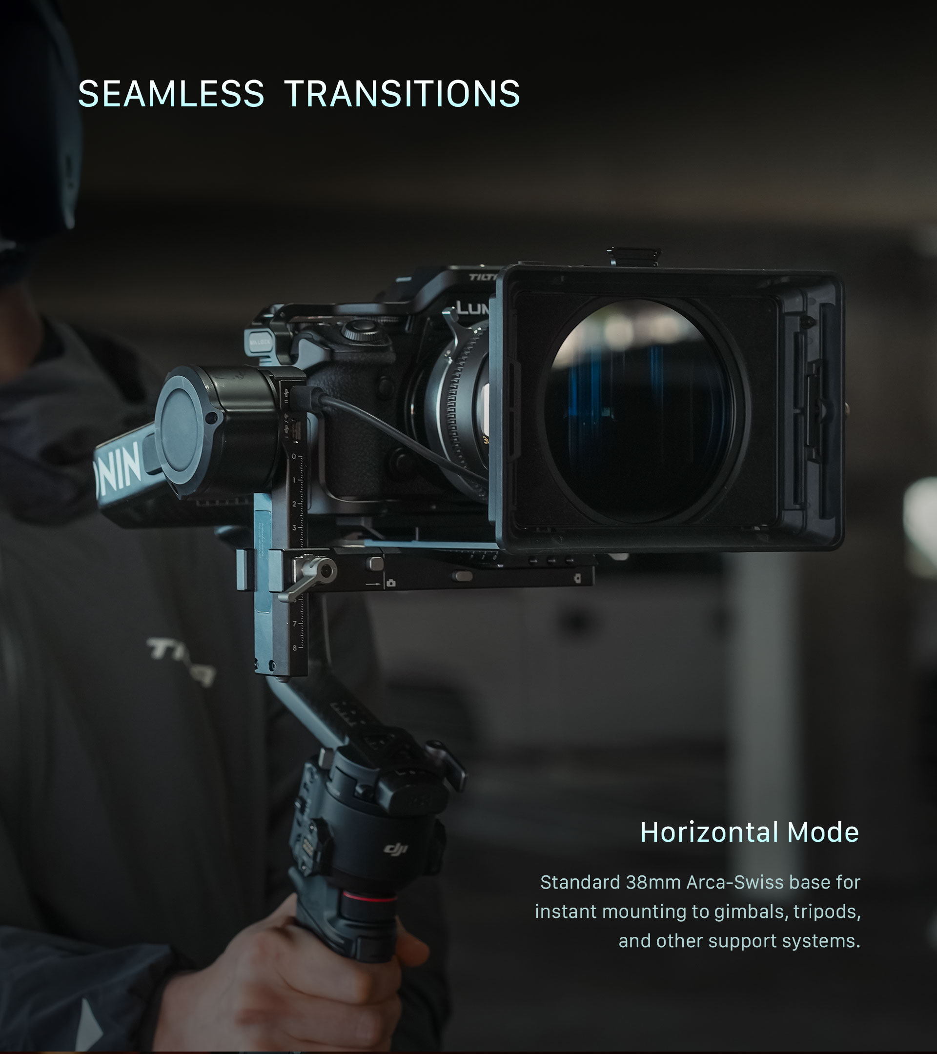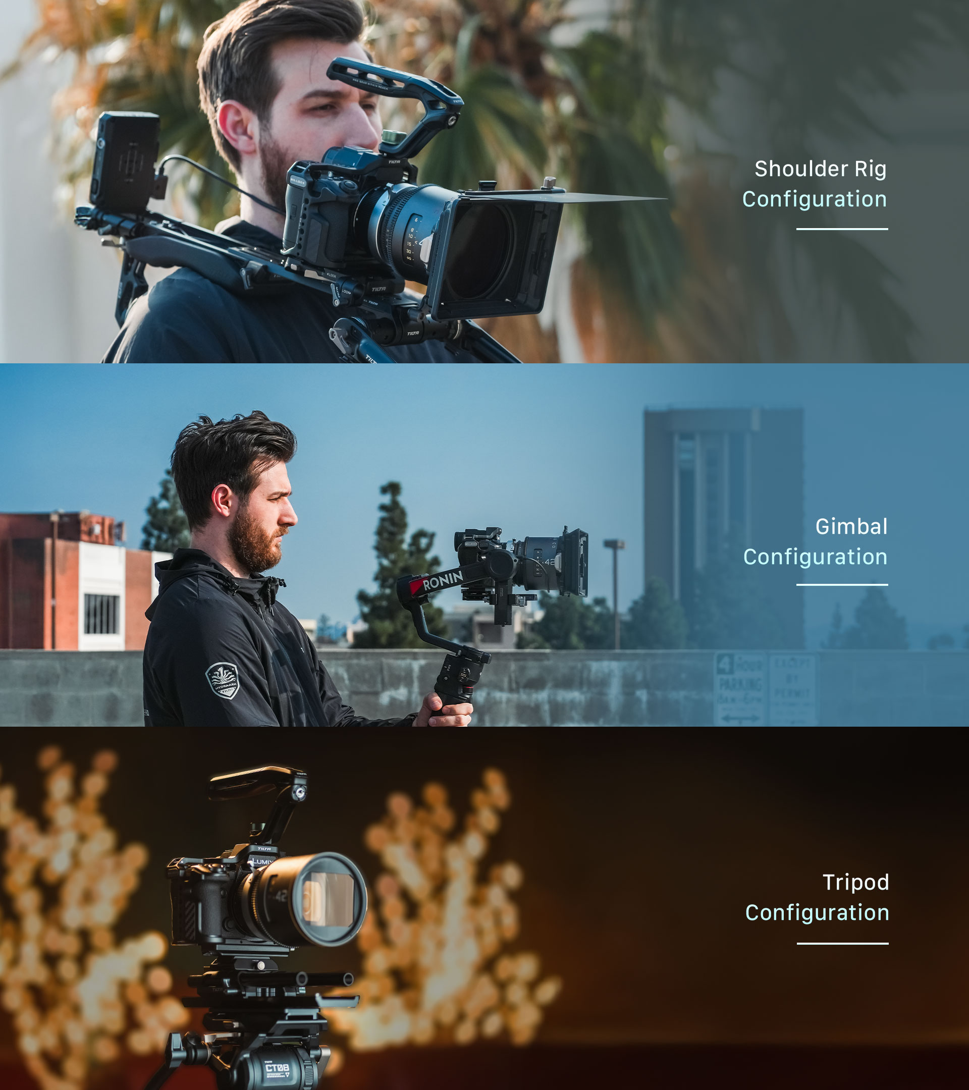 Opremljen je z ARCA spodnjo ploščo, ki omogoča enostavno namestitev sistema na različne stative, podporne sisteme in DJI Ronin Gimbals, kot je RS4 Pro. Namestitvene točke na stranskem ročaju omogočajo enostavno namestitev ARCA Quick Release Plate (ni vključena), ki omogoča hiter prehod na vertikalno namestitev.