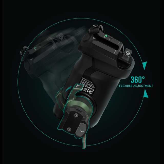 Pokročilá sada obsahuje boční rukojeť PD s vysokokapacitní interní baterií o výkonu 50 wattů za hodinu, která poskytuje 50 wattů výkonu pro chladicí systém a prodlužuje dobu provozu. Uvolňovací páčka na rukojeti umožňuje rychlé a přesné nastavení úhlu rukojeti, což zjednodušuje ovládání a vytváří efektivnější pracovní postup. Sada také obsahuje horní rukojeť, která rozšiřuje možnosti upevnění a zároveň zlepšuje flexibilitu pro provoz různých konfigurací a úhlů natáčení. Tyto systémy rukojetí transformují klec z ochranného pouzdra na plně integrovanou produkční soupravu.