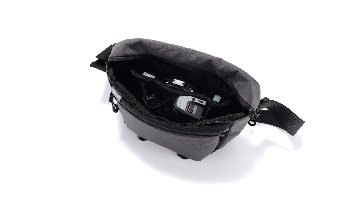 Tilta Khronos Carrying Pouch je 1,11 kg težka torba iz materiala Space-Grey Ecopak® EPX200, ki se s pomočjo zadnjih večnamenskih trakov spremeni iz torbe za pas v torbo za prsni koš ali dodatno torbo za nahrbtnik. Vodotesni SBS zadrgi + skriti žep za drobnarije ohranjajo vašo opremo Khronos (torbo, ročaje, filtre, SSD) popolnoma suho in pripravljeno za uporabo.