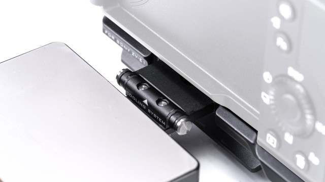 Osnovna plošča ima nastavljivo pritrdilno točko za priloženi hladilni sistem, ki uporabnikom omogoča daljše snemanje, zlasti pri višjih temperaturah.