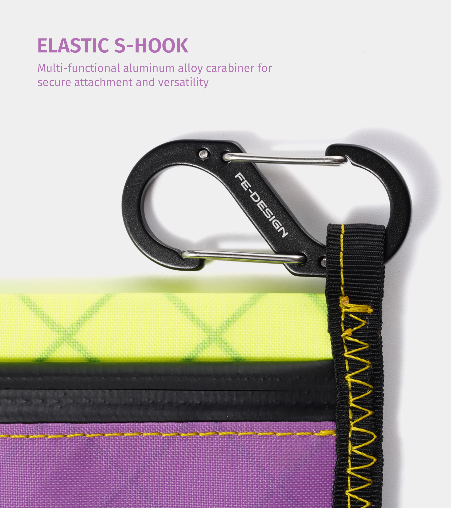 Vsak detajl kartičnika Fé je skrbno premišljen. Elastični S-kavelj je vsestranski karabiner iz aluminijeve zlitine za varno pritrditev na torbe, pasove ali opremo.