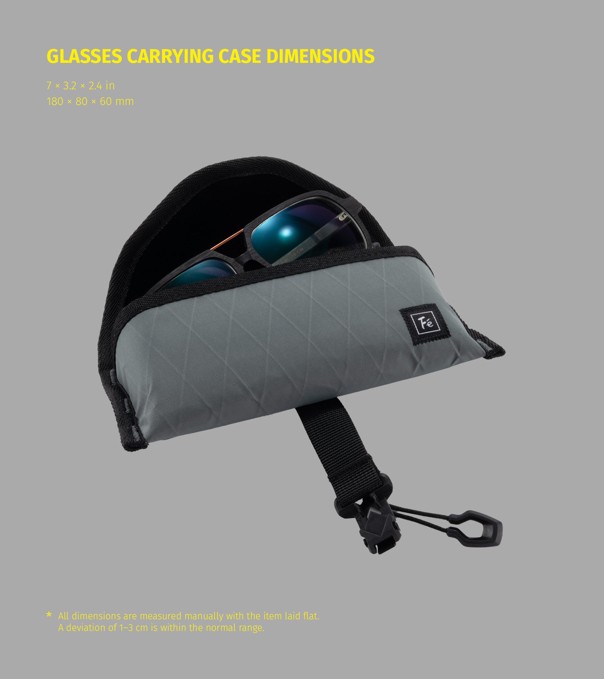 Ta lahka torbica, zasnovana za varno shranjevanje očal ali sončnih očal, ima trikotni Duraflex obroč za enostavno pritrditev na pasove, torbe ali zanke za opremo.