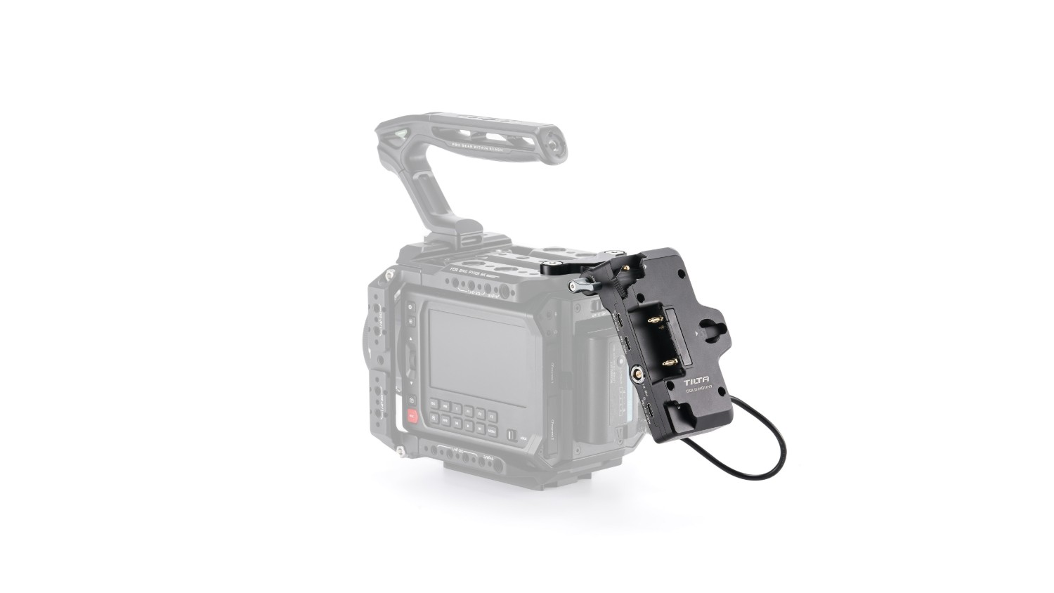 Ta Gold Mount baterijska plošča se namesti neposredno na našo kamero Cage za Blackmagic PYXIS 6K/12K in ima več izhodnih vrat za napajanje, kot so PD USB-C, P-Tap in 2-pin, ter PD USB-C vhod.