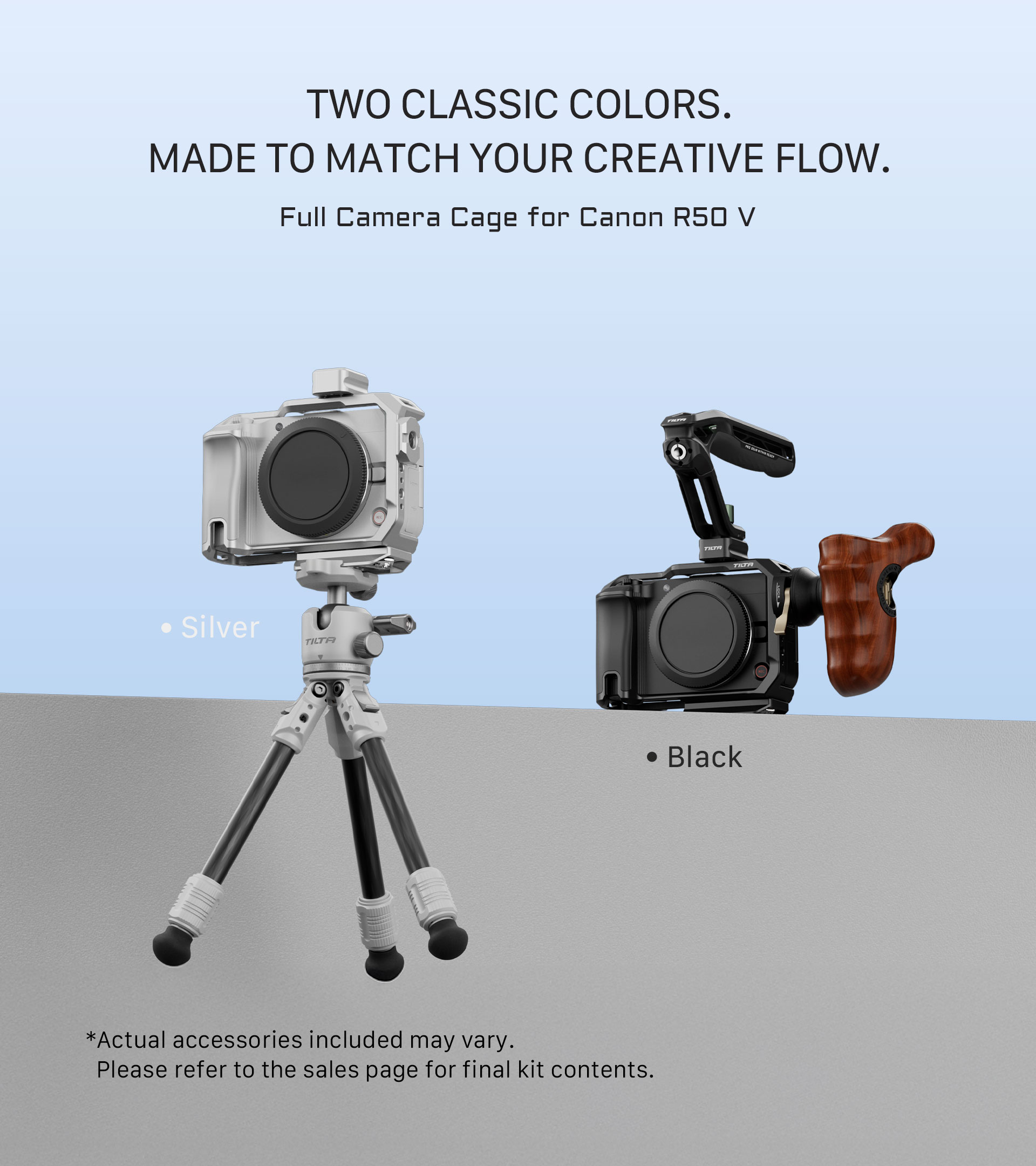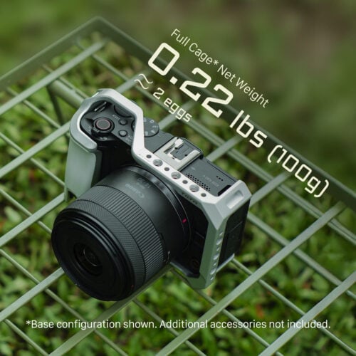 Predstavljamo vam polni okvir za kamero Canon R50 V. Ta okvir za kamero služi kot dodatna zaščita za ohišje kamere, hkrati pa omogoča namestitev široke palete zunanjih dodatkov prek več možnosti pritrditve, vključno s hladnim čevljem, NATO-tirnico in ¼”-20 navoji z lokacijskimi točkami.