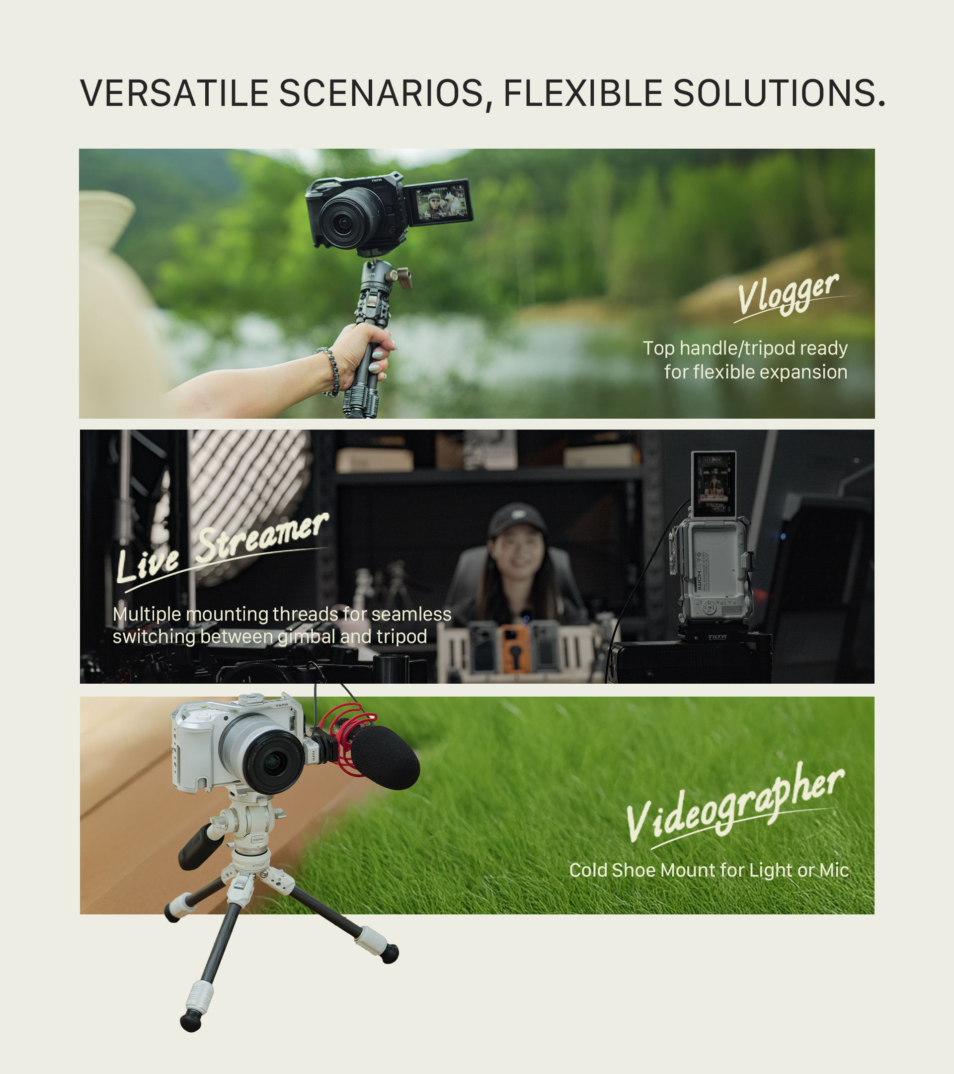 Vključili smo vgrajen ročaj s silikonskim držalom, ki se tesno prilega krivini dlani, zaradi česar je uporaba v roki udobnejša kot pri tradicionalnih kletkah za kamere.