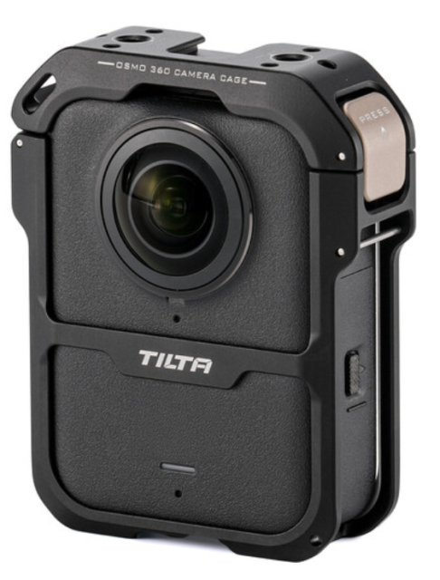 Tilta TA-T89-FCC-B Full Camera Cage je lahka, črn zaščitni okvir iz magnezija in aluminija, posebej zasnovan za akcijske kamere DJI Osmo 360, z zasnovo za takojšnjo hitro sprostitev, združljivo z DJI Magnetic Connector, zaščito celotnega okvirja brez oviranja vrat ali upravljalnih elementov, več navojev 1/4"-20 proti zasukom in hladno stopalko za dodatke, snemljivo stransko ploščo za enostaven dostop do baterije/SD kartice in vgrajenim režo za trak za varno rokovanje.