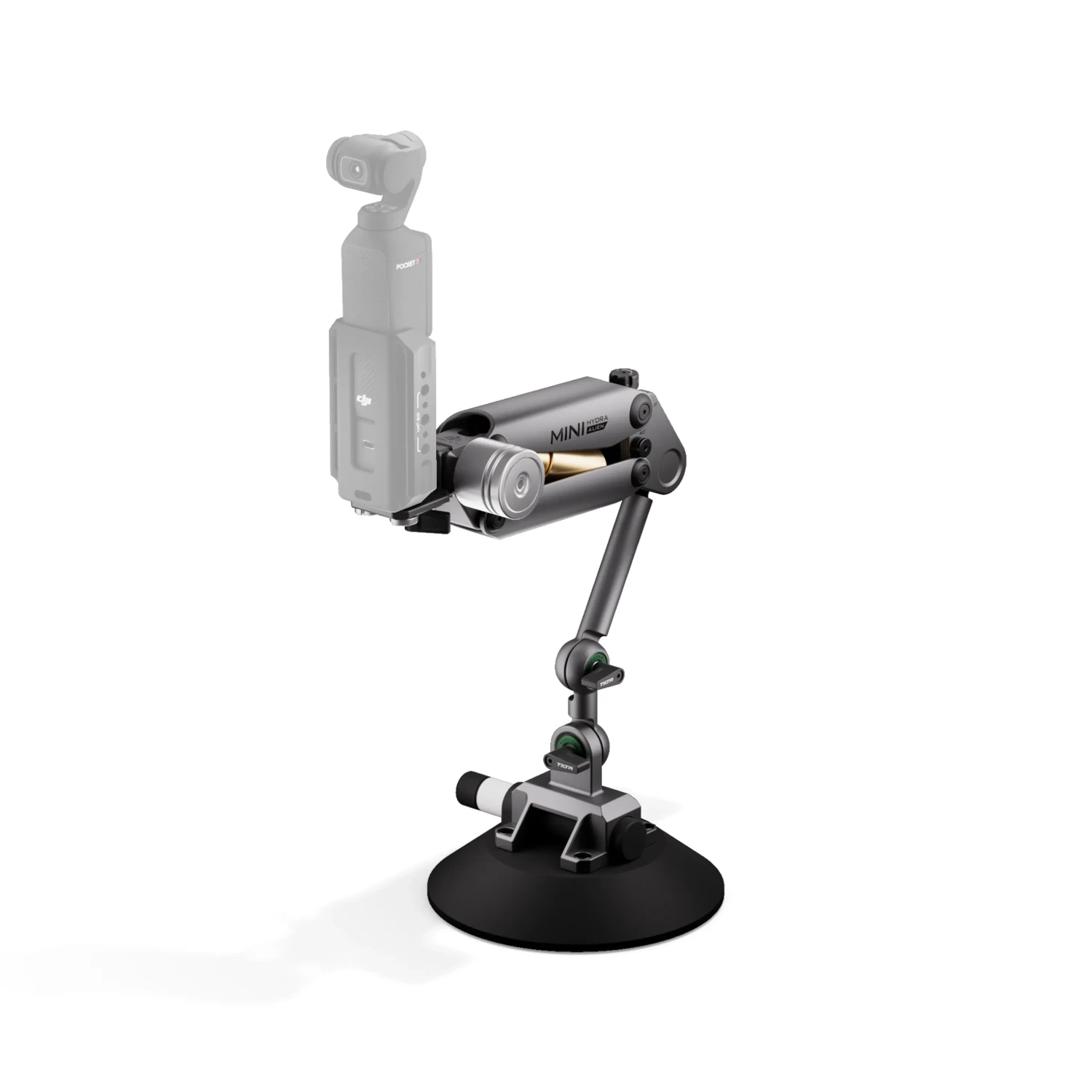 Tilta Hydra Alien Mini Electronic Suction Cup Kit v titanovo sivi barvi je robusten, kompakten sistem za pritrditev v avto, zasnovan za majhne fotoaparate, ki ga odlikujejo zmogljiv elektronski prisesek s spremljanjem tlaka v realnem času, roka za blaženje udarcev in vsestranske možnosti pritrditve za akcijske in žepne fotoaparate.