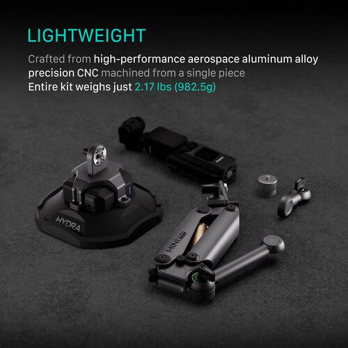 Tilta Hydra Alien Mini Master Kit (Desert Beige ) je napreden stabilizacijski sistem, namenjen namestitvi akcijskih kamer in kompaktnih snemalnih naprav na različna vozila, vključno z avtomobili, motocikli in kolesi. Ta miniaturna različica, navdihnjena s sistemom Hydra Arm podjetja Tilta, zagotavlja vrhunsko absorpcijo udarcev in vrhunsko stabilnost v lahki in kompaktni obliki.