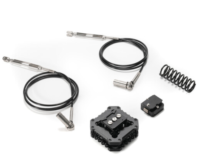 Komplet Tilta HDA-T08-MK-R2 nadomešča serijske poliuretanske blažilnike z jeklenimi blažilniki, ki odlično blažijo močne vibracije na neravnih cestah in pri vožnji z visoko hitrostjo. Trdnejša vzmet za težka bremena poveča varno delovno obremenitev na 28,7 lb, vključena plošča za hitro sprostitev Ronin 2 pa omogoča neposredno montažo kardanskega sklopa brez dodatnih orodij in dodatnih zatičev. Dva 2-metrska nosilna kabla iz nerjavečega jekla dodajata redundanci in dodatno stabilizirata sistem. Opomba: ta modifikacija omejuje roko na samo dva dela (brez tretjega podaljška), da se ohrani varnostna rezerva pri višji nosilnosti.