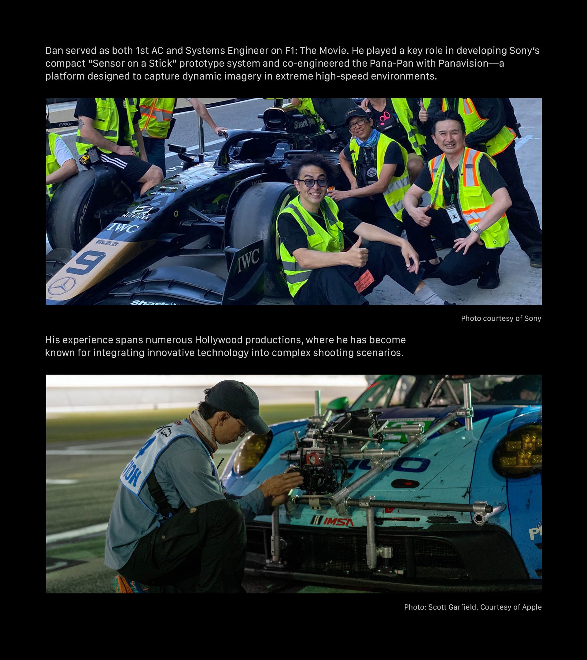 Dan Ming je bil prvi asistent kamere in sistemski inženir pri filmu F1: The Movie. Imel je ključno vlogo pri razvoju kompaktnega prototipnega sistema Sony „Sensor on a Stick“ in je skupaj s Panavisionom sodeloval pri razvoju Pana-Pana.