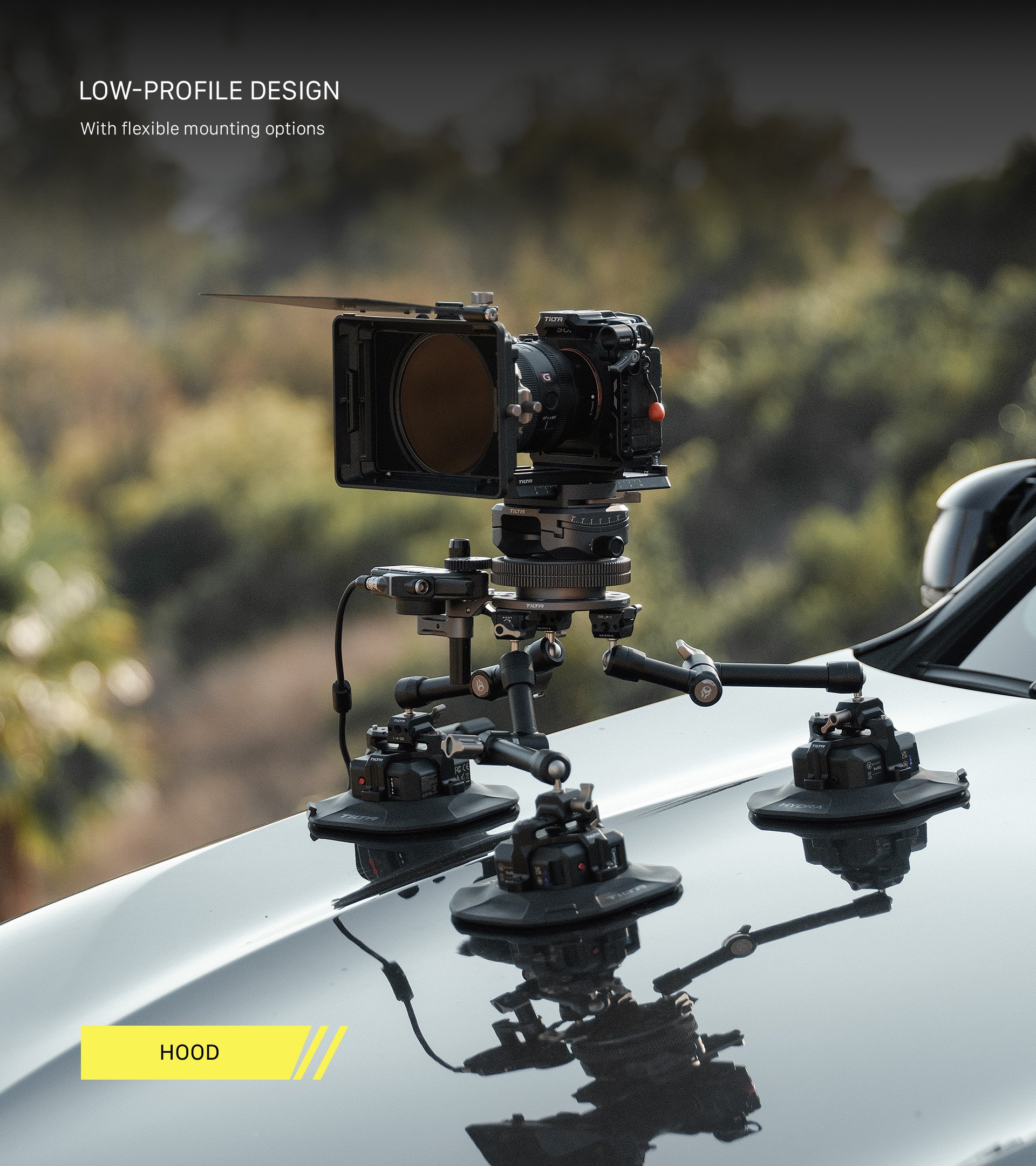 Ta sistem je zasnovan za snemanje hitrih akcij, ki so značilne za snemanje med avtomobili, vendar ga je mogoče uporabiti tudi v drugih kreativnih scenarijih snemanja prek več pritrdilnih točk na sami enoti, kot so NATO in ¼”-20 navoji.