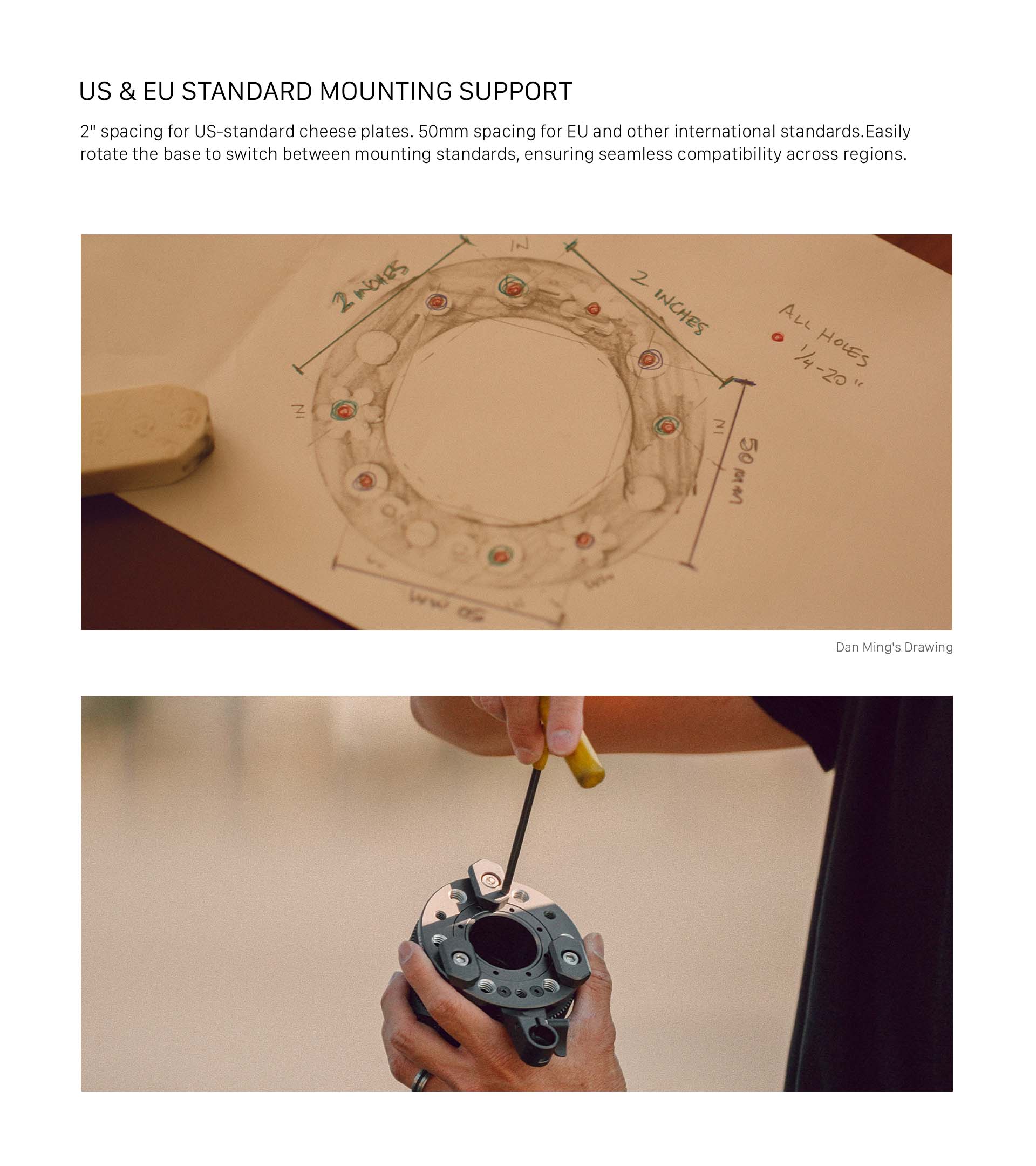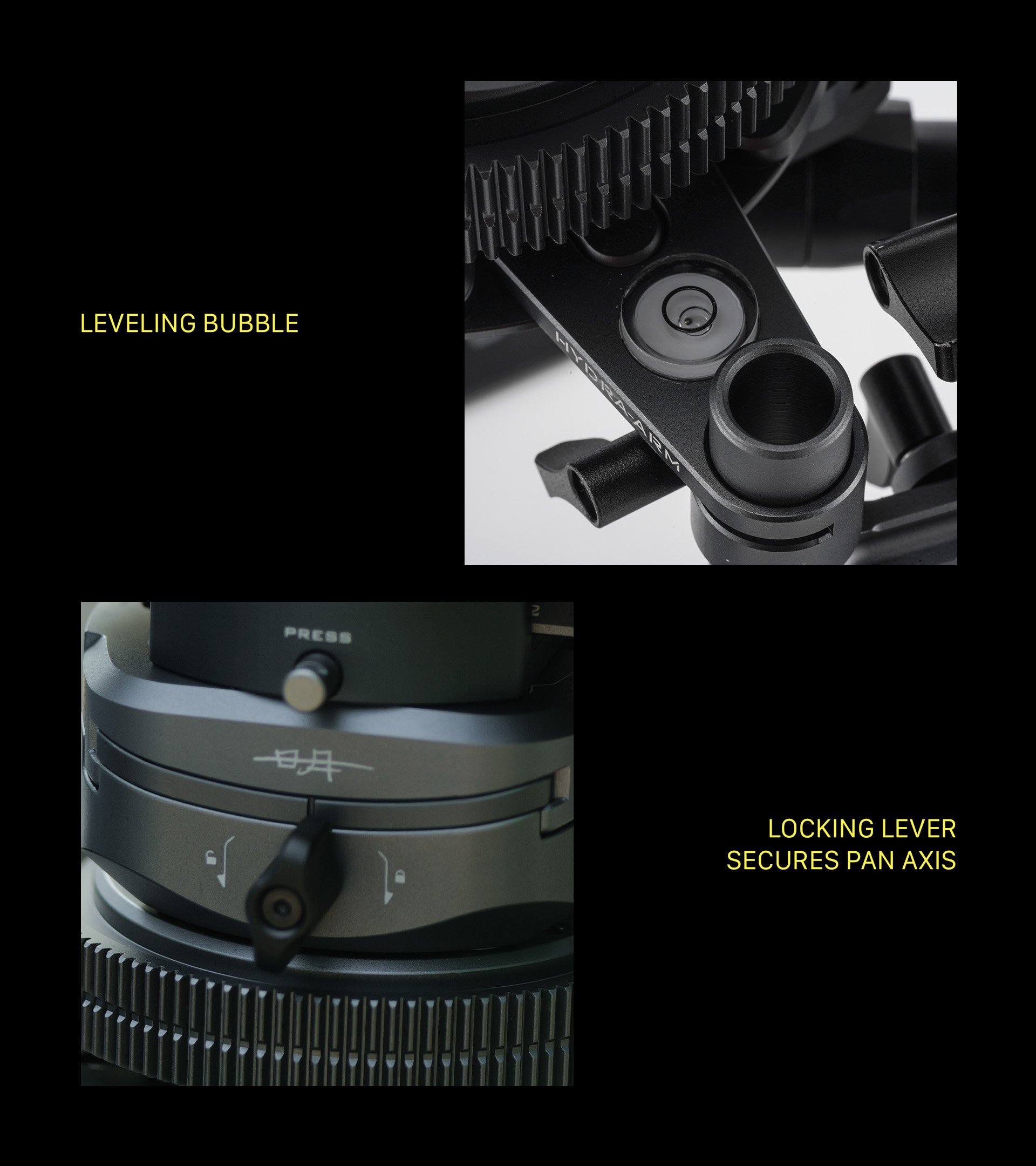 Osnova tega sistema je vrtljiva podlaga z zobniki za vrtenje motorja za sledenje ostrenju. Kamere z majhnim formatom, kot so akcijske kamere ali DSLR-ji, se lahko namestijo prek plošče za hitro sprostitev.