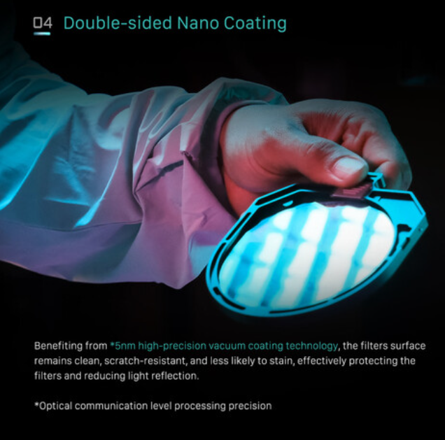 Filter Tilta TF-95-BS 95 mm Illusion Blue Streak Filter spremeni običajne točkovne svetlobe v izrazite, podolgovate modre odseke, ki spominjajo na klasično anamorfno steklo. Filter se vrti za 360° znotraj 95-milimetrskega držala Mirage, kar vam omogoča popoln kreativni nadzor nad smerjo odsekov, ne da bi morali premeščati matte box. Izdelan je iz visokokakovostnega optičnega stekla z večplastnim nano premazom na obeh straneh, kar ohranja izjemno ostrino in barvno zvestobo, hkrati pa dramatično zmanjša odseve, prstne odtise in praske. Nepogrešljivo orodje za kinematografe, ki želijo anamorfno estetiko »modre črte« na cenovno ugodnih sferičnih lečah ali pri snemanju z odprtim zaslonom/variscopom.