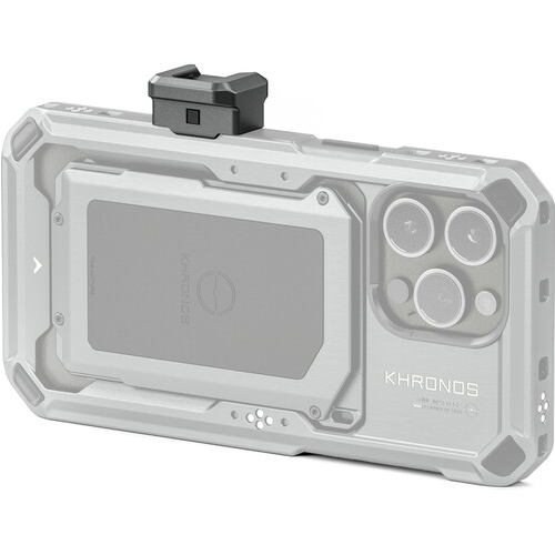 Adapter Tilta Khronos Cold Shoe Quick Release Adapter v vesoljsko sivi barvi vam omogoča, da na iPhone 15 Pro ali Pro Max s pomočjo ohišja Khronos pritrdite klasično dodatno opremo za fotoaparat. Trdno se pritrdi z zaklepno sponko in zagotavlja vsestransko rešitev za razširitev vaših mobilnih filmskih zmogljivosti.