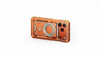 Ohišje Tilta Khronos iPhone 17 Pro Max v oranžni barvi je osnova mobilnega filmskega ekosistema Khronos. To zaščitno ohišje za pametni telefon, navdihnjeno s kletko, je posebej zasnovano za iPhone 17 Pro Max in ima zasnovo Snap-in za hitro snemanje ter razširljivo zasnovo z več pritrdilnimi točkami, vključno z mehanizmom za zaklepanje. Pomembno je, da vključuje integrirane elektronske kontaktne točke za neposredno prenos energije na pritrjene dodatke, kot so ročaji za ostrenje in luči.