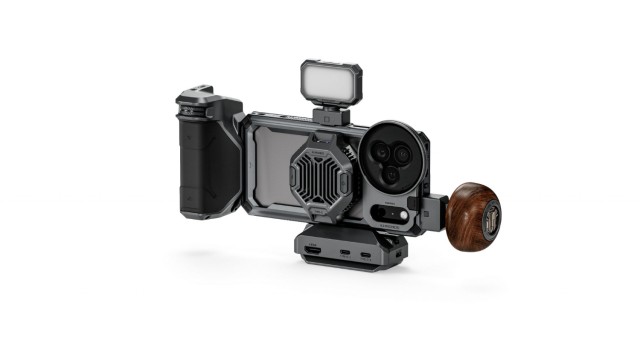 Tilta Khronos iPhone 17 Pro Max Ultimate Kit v barvi Space Gray je profesionalni mobilni sistem za snemanje filmov, zasnovan posebej za iPhone 17 Pro in Pro Max. Ima vgrajen USB-C hub s SSD in HDMI vrati, napajani ročaj za ostrenje z zoomom in nadzorom snemanja, izboljšano hlajenje prek magnetne brezžične povezave, 58-mm spremenljivi ND filter in vsestranske možnosti pritrditve za večjo kinematografsko ustvarjalnost.