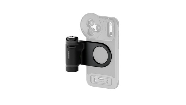 Vključen je magnetni nosilec, ki omogoča varno povezavo med ročajem in iPhoneom ter zagotavlja fleksibilnost in enostavnost uporabe. Z Bluetooth povezavo ročaj ohranja USB-C vrata iPhonea prosta, hkrati pa omogoča nemoteno nadzorovanje ostrenja, zumiranja, zaklopa in snemanja neposredno z ročaja.