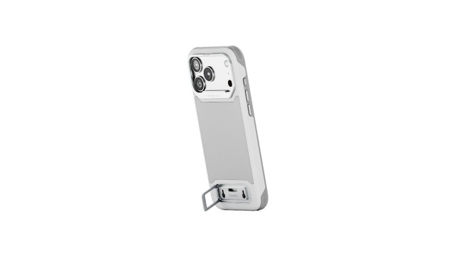 Kratek opis: Tilta Khronos Lite Case v svetlo sivi barvi je lahek zaščitni etui za iPhone 17 Pro/Pro Max, zasnovan za izboljšanje vsakodnevne in profesionalne uporabe. Ima vgrajen vertikalni/horizontalni stojalo, magnetno zadnjo ploščo za dodatke (SSD-je, luči, powerbank), zaščitni kovinski obroč za objektiv, ojačene vogale in kapacitivni dotik za gumb za nadzor kamere.