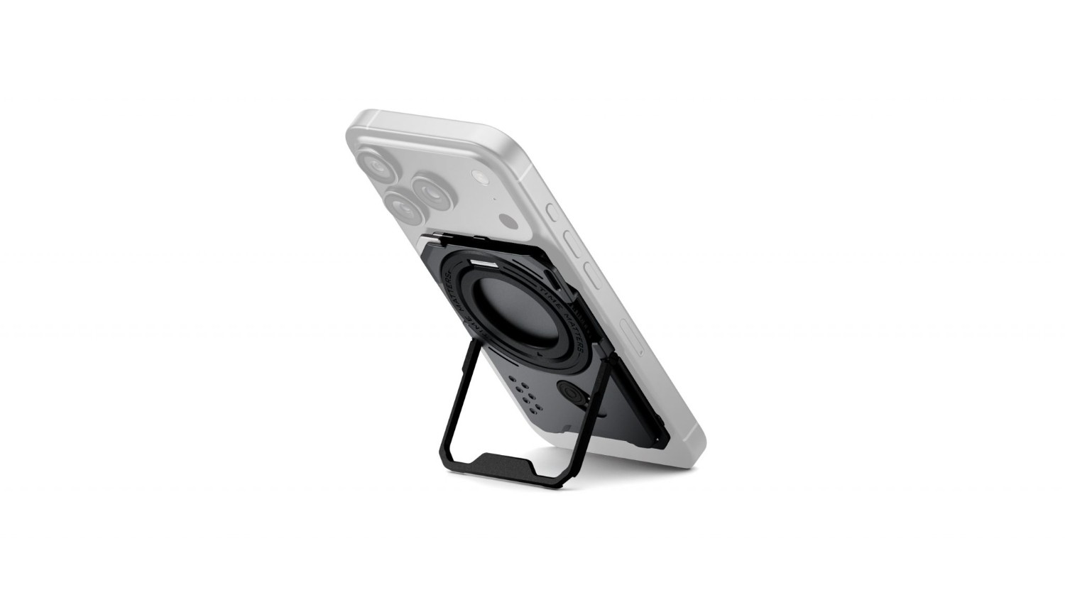 Večfunkcionalna magnetna plošča Tilta Khronos v barvi Space Gray je zasnovana za modele iPhone 15, 16 in 17 Pro/Pro Max. Omogoča magnetno povezavo, neodvisno od ovitkov, nastavljivo stojalo za stabilno vodoravno in navpično namestitev ter združljivost z različnimi magnetnimi dodatki, ki izboljšujejo snemanje in vsakodnevno uporabo.