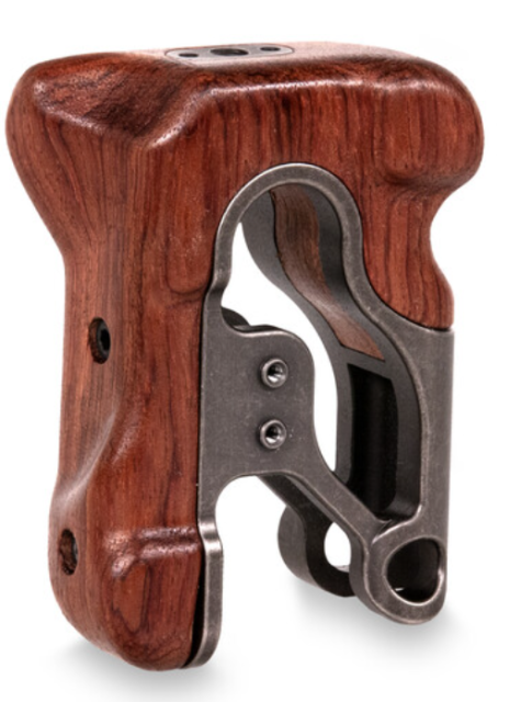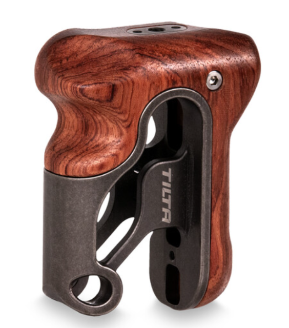 Tilta TA-LWH je vrhunski leseni ročaj na levi strani, izdelan za filmarje, ki cenijo brezčasen občutek pravega lesa v kombinaciji s Tiltajevo natančno inženirstvom. Gladek, oblikovan ročaj iz orehovega lesa je nameščen na lahki, a trdni aluminijasti nosilec, ki je obdelan v Tiltajevi značilni barvi Tactical Gray in ponuja odlično ergonomijo za uporabo na rami, v roki ali s pomočjo gimbala. Čeprav gre za „zastarelo“ obliko iz zgodnje Tiltaingove ponudbe, ostaja priljubljena zaradi ravnovesja med udobjem, estetiko in trajnostjo. Upoštevajte, da ta ročaj ne vključuje vgrajenih upravljalnikov za snemanje/začetek-konec in zahteva združljiv Tiltaingov adapter za ročaj (kot je TA-LHA ali podoben), da se lahko pritrdi na trenutne Tiltaingove kletke.