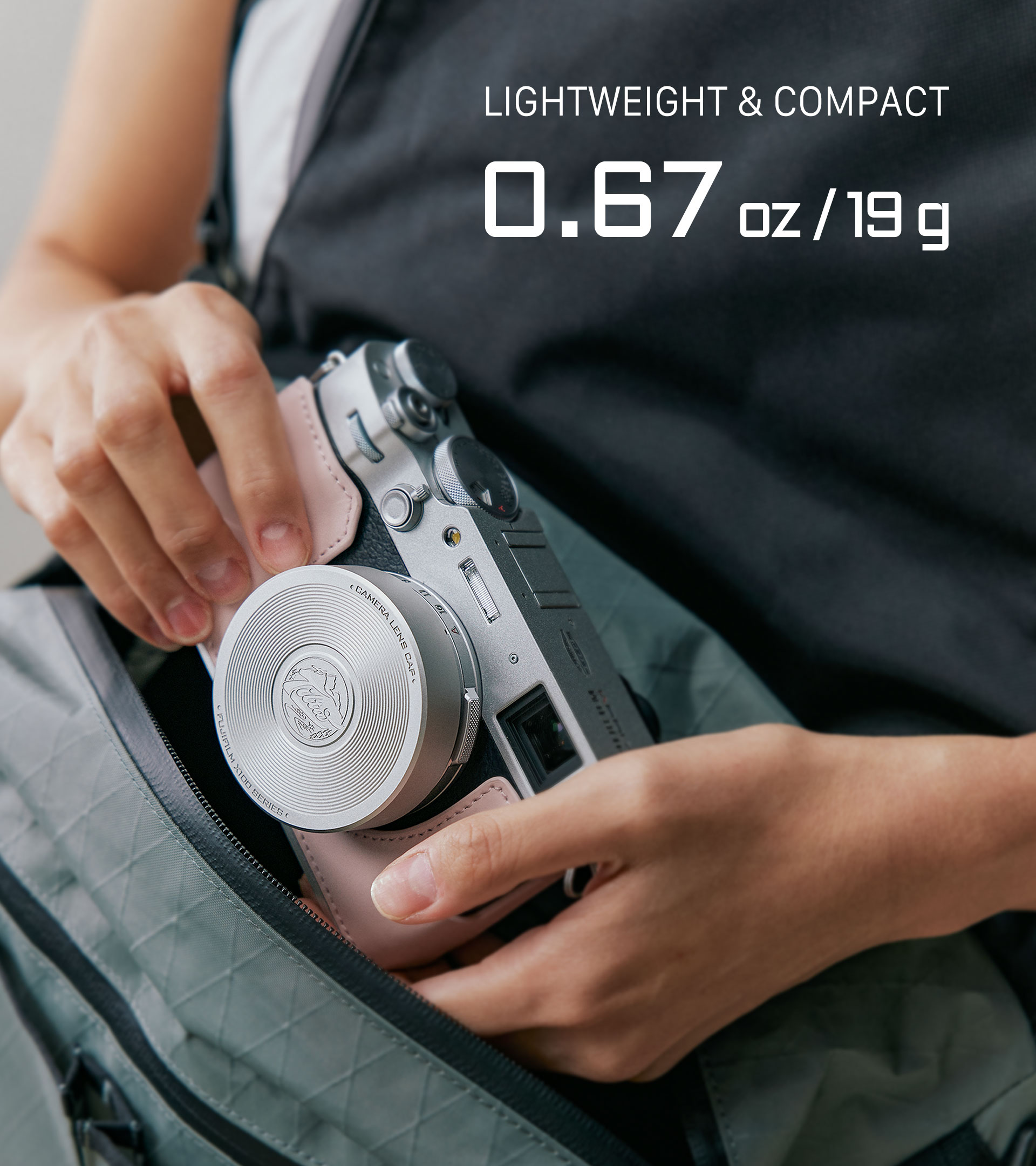 Ta lahka, a trpežna kapica tehta le 0,67 unče (19 g) in je zasnovana tako, da se brezhibno prilega objektivu fotoaparata in ga ščiti.